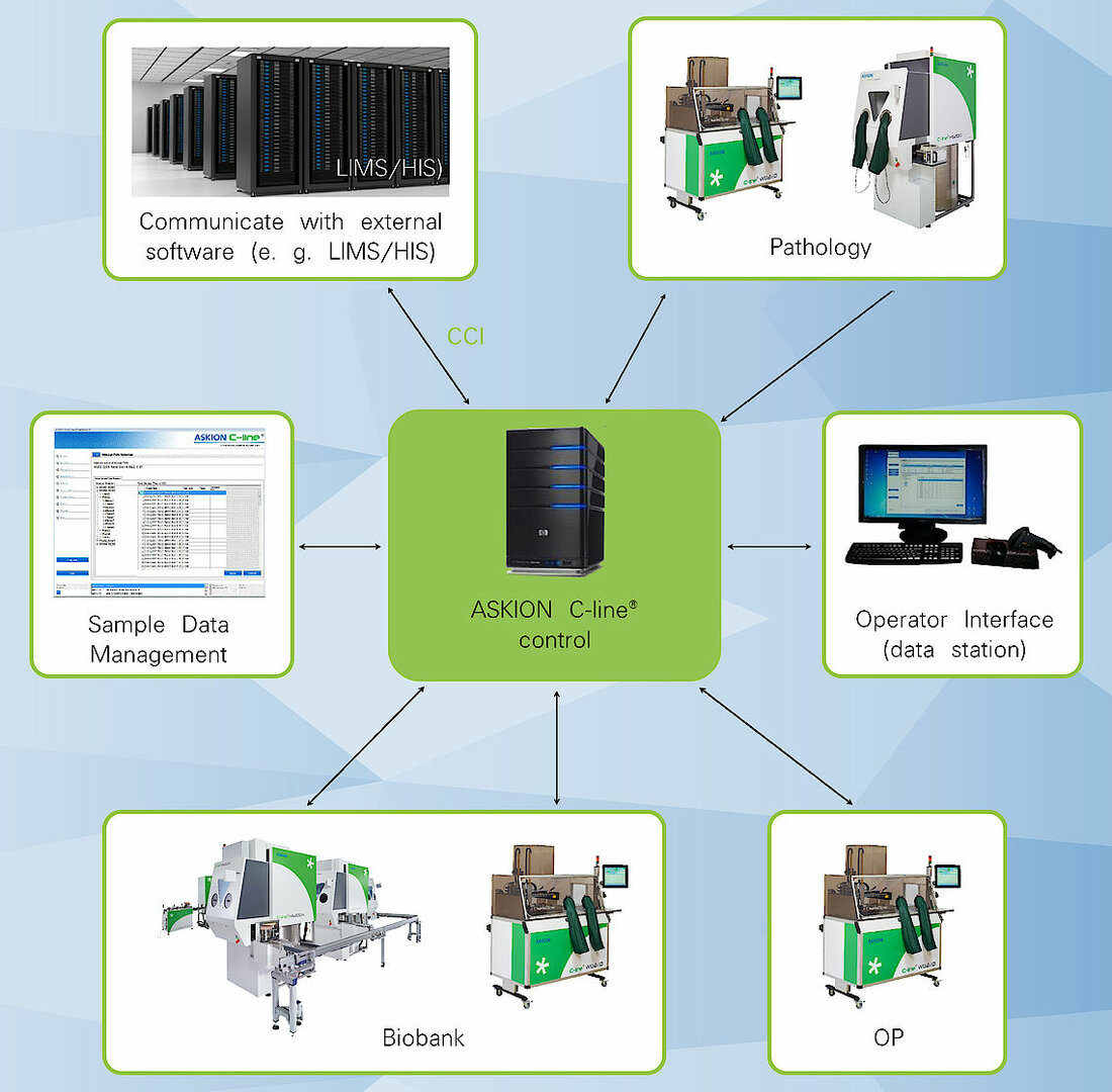 ASKION C-line® Control 2.0 是生物样本库的智能中枢与通信接口,可管控所有流程与工作流。